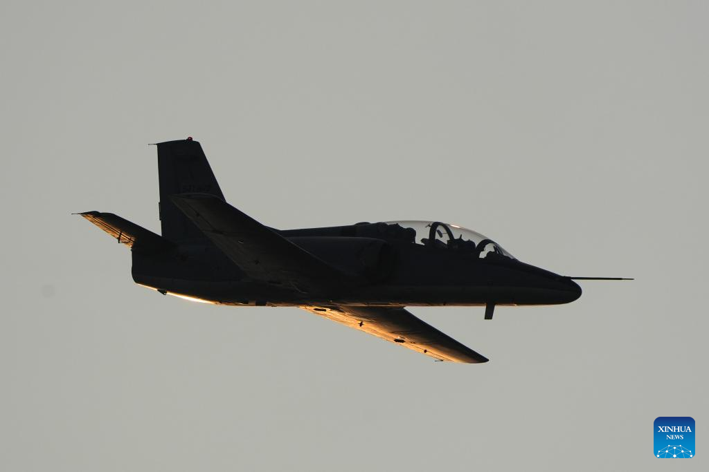 A plane performs during the exhibition and air show to mark the 75th anniversary of the Sri Lanka Air Force in Colombo, Sri Lanka, on March 6, 2026. (Photo by Thilina Kaluthotage/Xinhua)