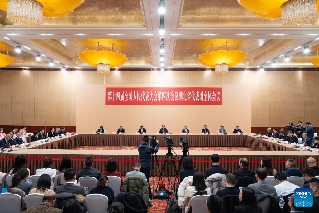A group meeting of deputies from the delegation of Hubei Province is held at the fourth session of the 14th National People's Congress (NPC) in Beijing, capital of China, March 6, 2026. (Xinhua/Li Minggang)
