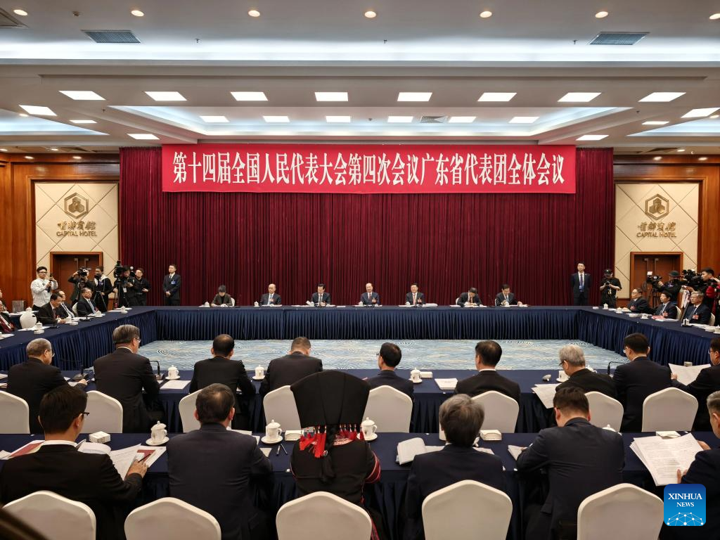 A group meeting of deputies from the delegation of Guangdong Province is held at the fourth session of the 14th National People's Congress (NPC) in Beijing, capital of China, March 6, 2026. (Xinhua/Xing Guangli)
