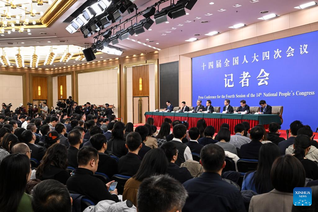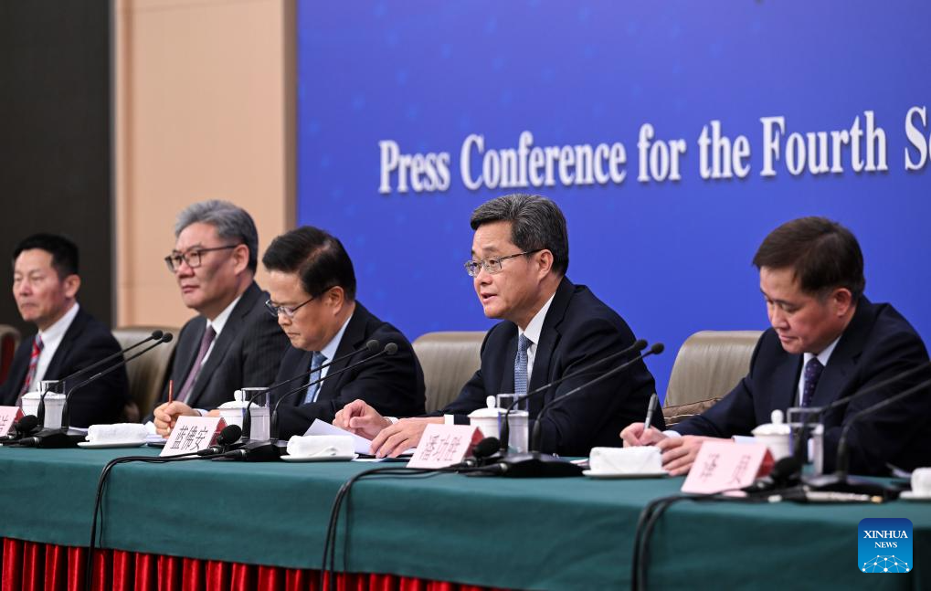 A press conference for the fourth session of the 14th National People's Congress (NPC) on economy is held in Beijing, capital of China, March 6, 2026. (Xinhua/Li Xin)