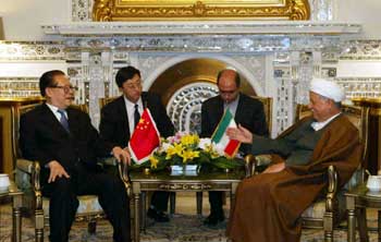 Chinese President Jiang Zemin Talks with Rafsanjani