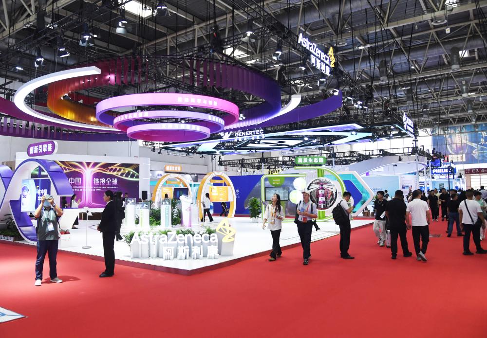 7月16日,观众在第三届链博会健康生活链展区参观。新华社记者 任超 摄