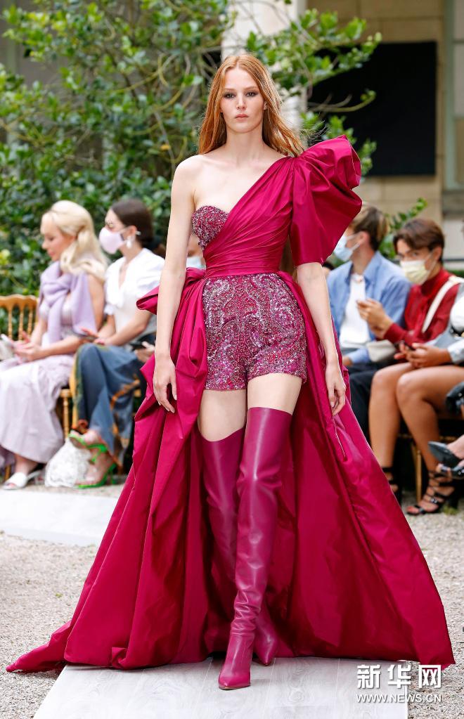 7月7日,模特在法國巴黎高級定制時裝周上展示Zuhair Murad品牌2021/2022秋冬新品。