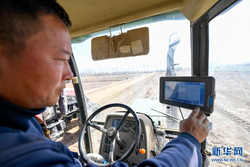 在位于寧夏吳忠市利通區金積鎮塔灣村的智慧農業科技示范區,農機手在播種前調試自動駕駛拖拉機(2020年4月9日攝)。近年來,寧夏吳忠市利通區大力發展智慧農業,通過引進北斗導航系統、智能環境與土壤監測系統、植保無人機等智能化農業技術和設備,幫助農民在提高耕作、播種效率與質量的同時,降低生產成本。