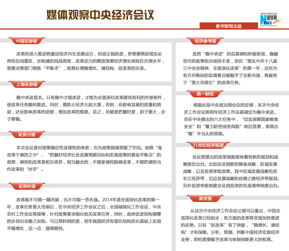 2014經濟發展路線圖確定 總基調穩中求進