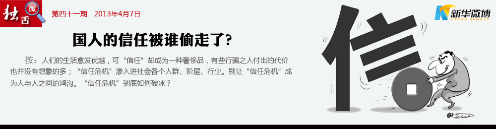當(dāng)“造假”成為“理所當(dāng)然” 誰(shuí)偷走了中國(guó)人的信任?一個(gè)段子說(shuō)是在如今中國(guó),賣包子的不吃自己做的包子,種菜不吃自己種的菜,賣藥的不敢吃自己生產(chǎn)的藥,賣奶粉則從不吃國(guó)產(chǎn)的奶粉。當(dāng)造假作假、坑蒙拐騙成一種風(fēng)氣,甚至成一種理所當(dāng)然時(shí)尚,每個(gè)人能做的就只剩兩件事了:一個(gè)是只信自己,另一個(gè)是絕不信別人。