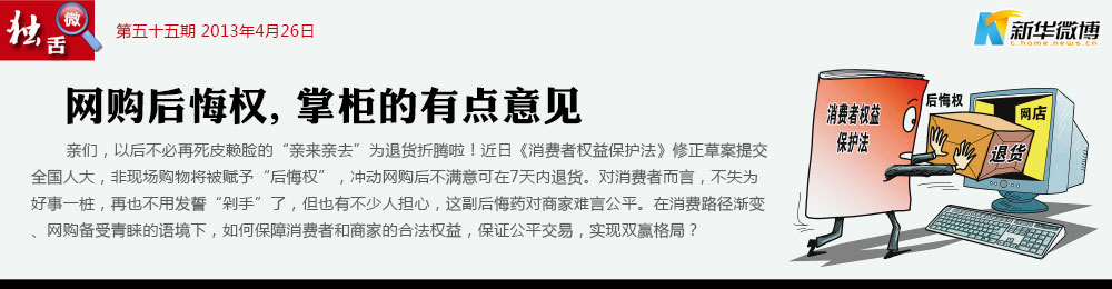 【規定有待細化】 如何端平行政手段調控的一碗水,看的就是在執行與監管中的功夫。將“后悔權”引入消法,應配套出臺相關實施細則。對退貨時郵寄費、送貨費等標準加以限定,充分體現消費者和經營者平等的原則,使其更具操作性。