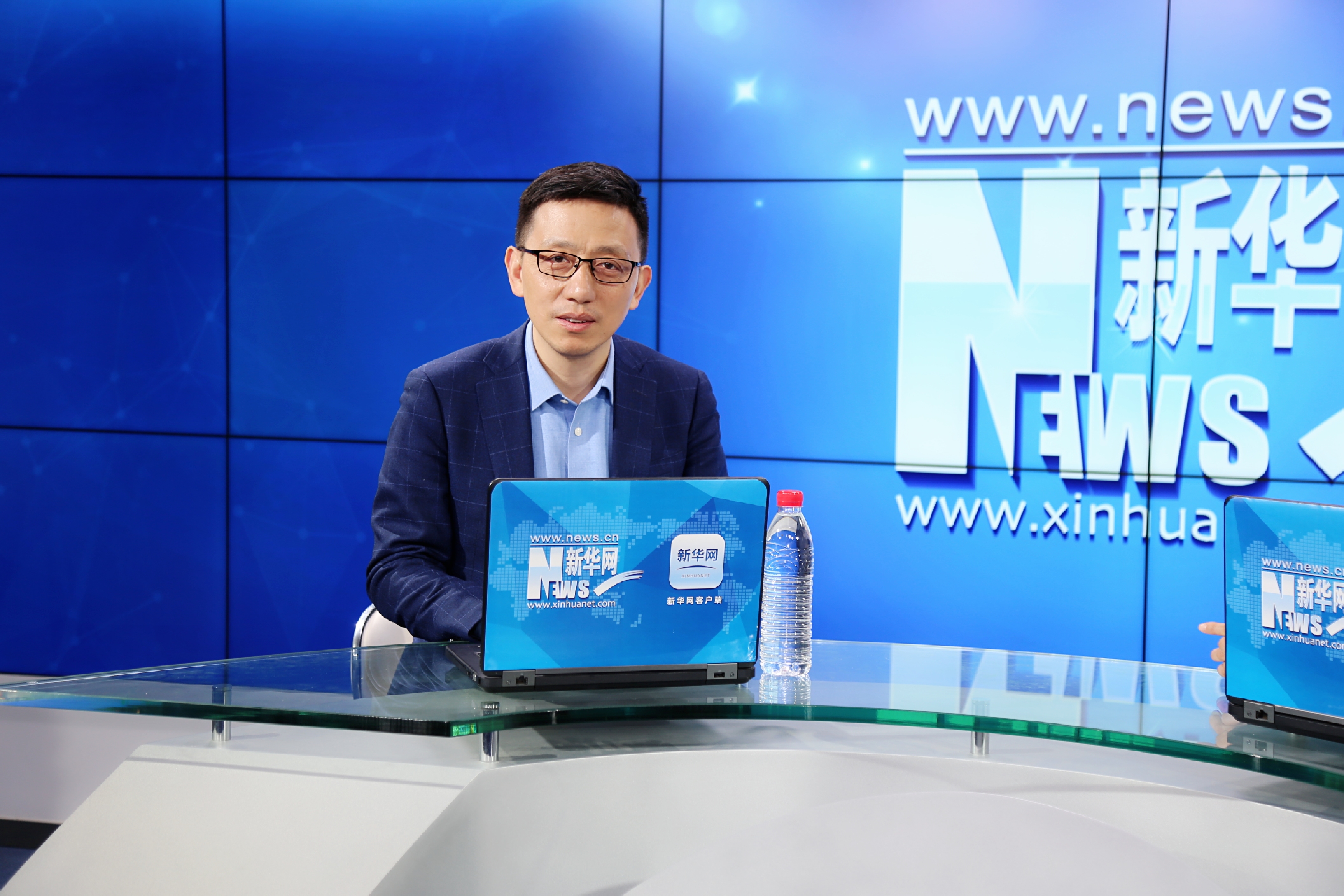 圖為顧均輝(左)做客新華網公益頻道“公益講堂”,就戰略定位落地實操與網友分享。