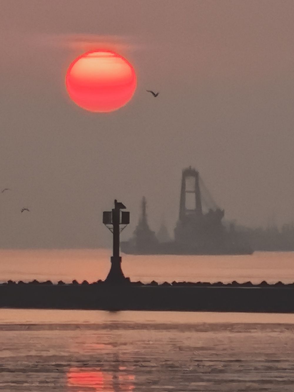 刚过6点,我已经来到上海宝山吴淞口的江边栈道上,这是我常来采访的地方,但这次没有采访任务,我只想静静地看一次完整的日出。