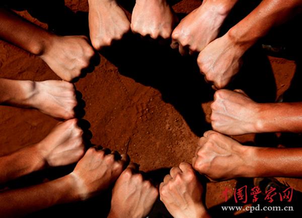 ????握緊拳頭,圍成同心圓,為了新營地加油!太陽底下,一雙雙手臂黑白分明,團(tuán)結(jié)的拳頭盡顯力量之美。