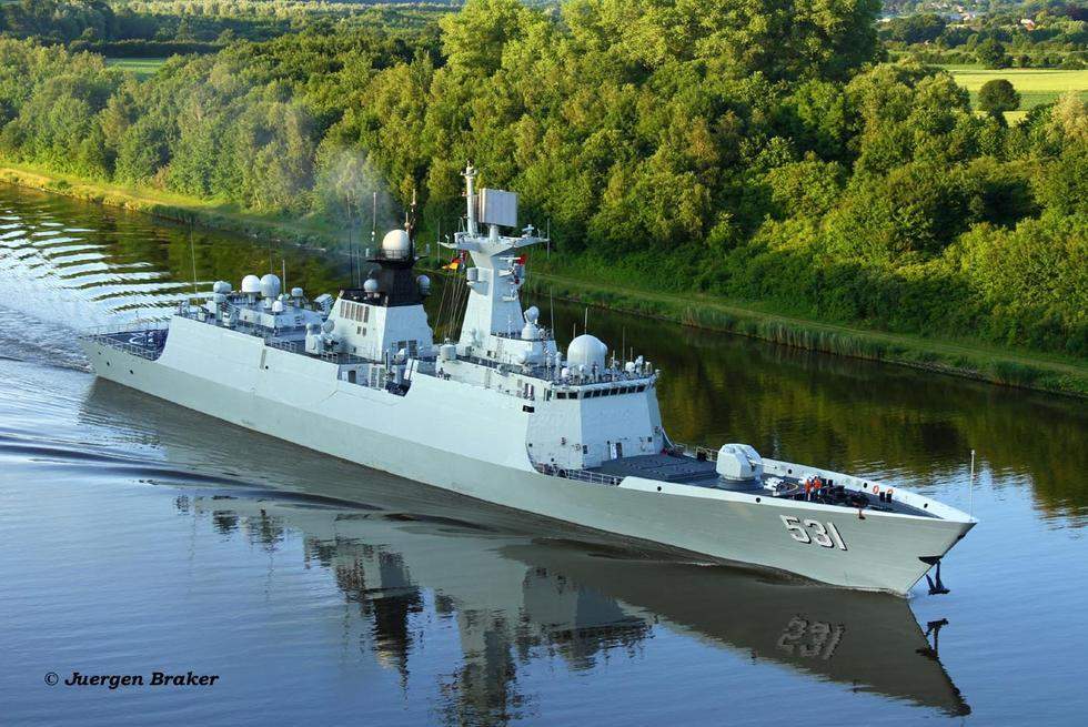 ??? 近日,中國海軍054A型護衛艦湘潭艦參加德國“基爾周”活動。德國“基爾周”活動起始于1882年,現已成為集帆船賽會、消夏文化節和國際軍艦聚會于一身的綜合性國際航海盛會。本屆“基爾周”活動于6月17日正式拉開帷幕,至26日結束,中國、美國、英國、荷蘭等12個國家的50余艘海軍艦船參加此次活動。