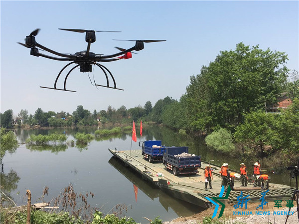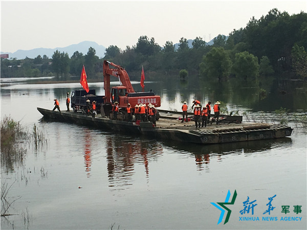 ????尤其在此次搶險中,武警水電部隊合理使用尖端裝備,為快速完成防汛救災(zāi)提供了有力保證。武警水電部隊緊急調(diào)運了新型抗洪重器——Q80動力浮橋投入萬子圩封堵現(xiàn)場,它同時能運送2臺大型挖掘機或3臺自卸車,一次運送20方石料,大幅縮短封堵時間。完成東至縣東湖圩潰口封堵任務(wù)后,為盡快幫助災(zāi)區(qū)群眾重建家園,武警水電部隊又緊急協(xié)調(diào)投入2臺“龍吸水”搶險排水車,每小時可抽排洪水4500方,對完成剩余潰口封堵任務(wù)發(fā)揮了巨大作用。