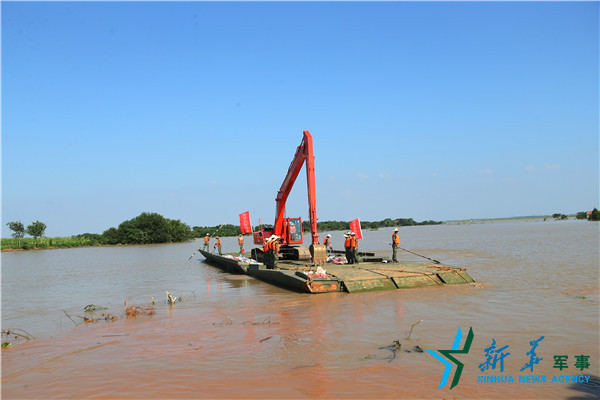 在湖北孝感,動(dòng)力舟橋?qū)⑼诰驒C(jī)運(yùn)送到對(duì)岸,雙向封堵。
