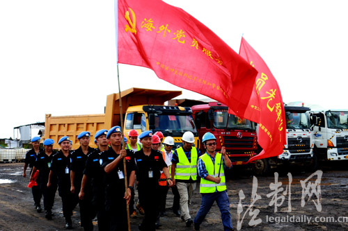 ????日前,為踐行“兩學(xué)一做”實(shí)踐,全面推進(jìn)“講黨性、迎考驗(yàn)、當(dāng)模范”主題教育,中國第四支駐利比里亞維和警察防暴隊(duì)聯(lián)合駐利中資企業(yè)開展聯(lián)創(chuàng)聯(lián)建活動(dòng),組建了由黨員先鋒骨干,機(jī)電、車輛維修等各領(lǐng)域技術(shù)“專家”以及醫(yī)護(hù)人員組成的海外黨員服務(wù)隊(duì)。