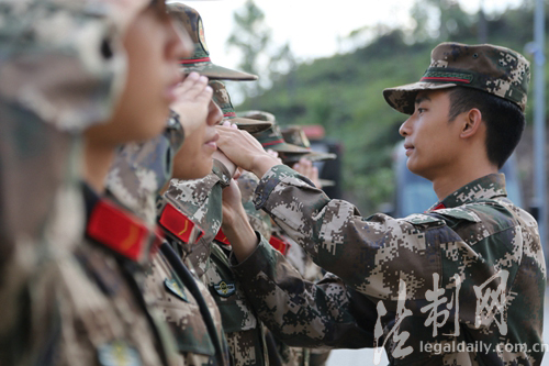 ????帶訓(xùn)骨干介紹,除了背包繩,班長們還利用撲克牌、水壺、輪胎等多種“就地取材”的輔助訓(xùn)練物品,全面提高新兵的等軍事素養(yǎng),為新兵們趕赴禁毒一線打好基礎(chǔ)。(陳奕武 張偉民)