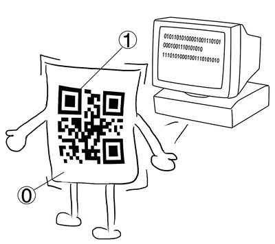 簡單點說,我是個圖形化的計算機指令,只要通過對應的識別軟件就可以讀取其中的指令并執行。我的黑色身形表示計算機二進制編碼的“1”,白色表示“0”,從而對文字、圖像等可數字化的信息進行編碼。