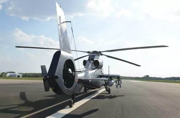 李生偉說,武直19E的設計源自于直-9,他們是有血緣關系。“后機身很多地方像極了直9,這是因為它借鑒了直9的成熟特點,像涵道尾槳是最明顯的,還有槳箍,槳葉等。涵道式尾槳有幾個顯著的特點,一個是噪音要比常規尾槳小很多,可以降低敵人噪聲的探測距離。另外受保護好些,因為外面套了個涵道環,不會受到低空時樹干等的干擾,防治這些東西卷入尾槳之后被破壞,所以低空的安全性會好很多。”