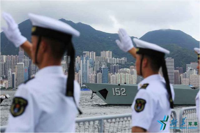 ↑7月7日,海軍濟(jì)南艦緩緩駛?cè)胂愀郯捍薮a頭。新華社記者 曾濤 攝