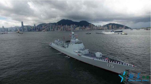 ↑7月7日,海軍煙臺(tái)艦停泊在香港昂船洲碼頭。新華社記者 曾濤 攝