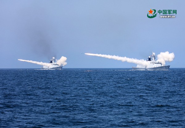 8月7日,海軍在黃海、渤海相關(guān)海空域組織實(shí)兵實(shí)彈對抗演習(xí),最大限度檢驗體系作戰(zhàn)能力、戰(zhàn)法訓(xùn)法、武器裝備效能,共實(shí)射各型導(dǎo)彈數(shù)十枚。李唐 攝(圖片來源:中國軍網(wǎng))