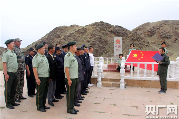 ????近日,烏拉斯臺邊檢站與口岸聯檢單位、“民族團結一家親”親戚代表、自治區駐疆內口岸工作組在中蒙163界碑共同舉行“軍旗映國門忠誠鑄軍魂”發聲亮劍活動,全面貫徹落實新疆維護社會平穩和長治久安總目標,打牢維護民族團結思想基礎,進一步增強廣大官兵的愛國主義情懷,展示執勤官兵敢于發聲、勇于亮劍的堅定黨性及堅強擔當,表明堅決聽黨指揮、堅決維護社會大局安定的理想信念。官兵們一致表示,將始終以更加飽滿的工作熱情投入到邊檢查緝工作中,認真履職,敢于擔當,筑牢邊境防控的銅墻鐵壁。