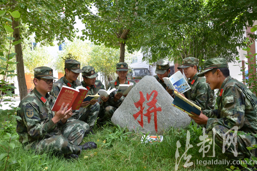 ????正是阿里普蘭的夏季,筆者迎著夏末舒爽的暖風(fēng)走進(jìn)了西藏邊防總隊(duì)普蘭邊檢站,立即被這里濃濃的讀書(shū)氛圍所吸引——營(yíng)區(qū)里懸掛著“知識(shí)無(wú)涯,學(xué)無(wú)止境”、“發(fā)奮識(shí)遍天下字,立志讀盡人間書(shū)”的標(biāo)語(yǔ),讀書(shū)室內(nèi)擺滿了各類學(xué)科的書(shū)籍,墻壁上貼滿了各種學(xué)習(xí)心得體會(huì),只見(jiàn)官兵們?nèi)齼蓛傻木墼谝黄穑峙鯐?shū)籍,交流著學(xué)習(xí)體會(huì)……