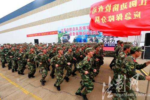圖為江蘇邊防總隊后勤應急保障拉動演練隊員在緊急集結