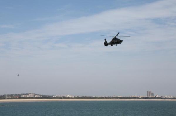 ????武裝直升機飛赴指定海域(4月18日攝)。