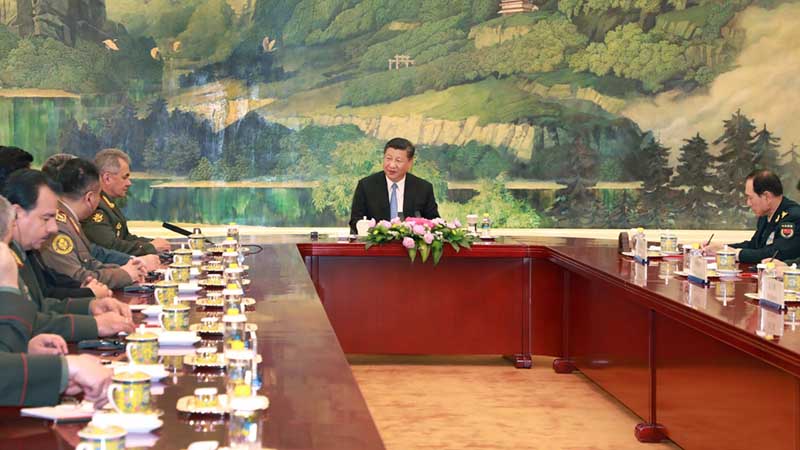 ????新華社北京4月23日電(記者梅世雄)國家主席習近平23日在人民大會堂集體會見上海合作組織成員國國防部長。俄羅斯國防部長紹伊古、哈薩克斯坦國防部長扎蘇扎科夫、吉爾吉斯共和國武裝力量總參謀長杜伊申比耶夫、巴基斯坦國防部長達斯特吉爾·汗、塔吉克斯坦國防部長米爾佐、烏茲別克斯坦國防部長阿濟佐夫,上海合作組織副秘書長索韋托維奇,上海合作組織地區反恐怖機構執行委員會副主任吉約索夫、印度駐華大使班浩然以及作為特邀嘉賓列席此次會議的白俄羅斯國防部長拉夫科夫參加會見。
