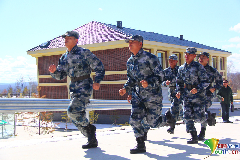 空軍漠河雷達站的官兵進行耐寒訓練。空軍漠河雷達站供圖