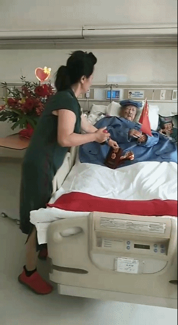 2019年10月1日,中華人民共和國迎來七十華誕。素來了解老人心思的陽瓊仙,專門帶了兩面國旗到病房里。閱兵開始后,滿頭銀發(fā)的王定國半躺在病床上,一手拿一面旗,隨著軍樂的節(jié)奏來回揮舞,累了,歇一下,又接著揮,仿佛自己正身處天安門廣場熱情歡呼的人群中。