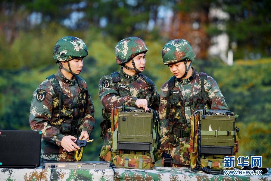 俞細(xì)文(左二)在野外訓(xùn)練場(chǎng)迅速架設(shè)通信臺(tái)站(12月11日攝)。新華社發(fā)(劉明松 攝)