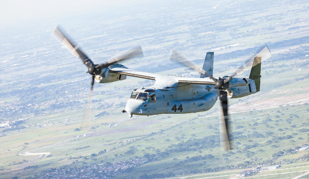 “鱼鹰”的全面研发工作始于上世纪80年代,它独特地融合了直升机和固定翼飞机的优势:起飞或降落时两副巨大的螺旋桨转向垂直方向,能像直升机一样在狭小场地、舰船甲板垂直起降或短距滑跑起飞;空中正常飞行时,螺旋桨又转为水平方向,像螺旋桨固定翼飞机一样在高空高速飞行。“鱼鹰”以海军陆战队的MV-22版本为基准,随即衍生出美国空军和海军的改进型号。