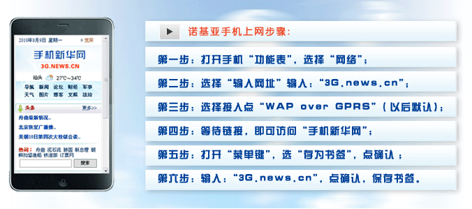 三星:依次選“上網鍵”-“收藏夾”-選擇一個空的收藏夾地址-確認url地址-輸入“手機新華網”