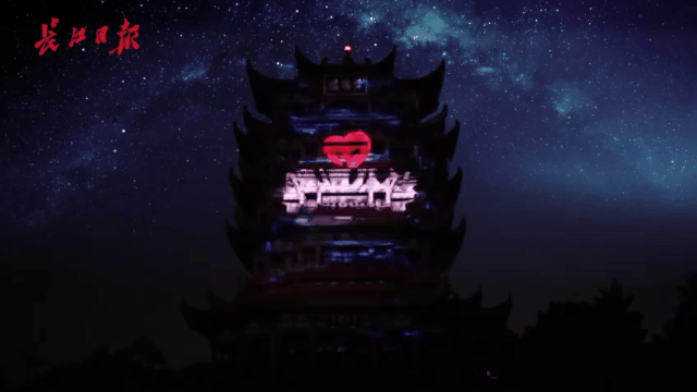 ▲黃鶴樓在夜晚上演絢麗的光影秀。圖片來源:長江日報