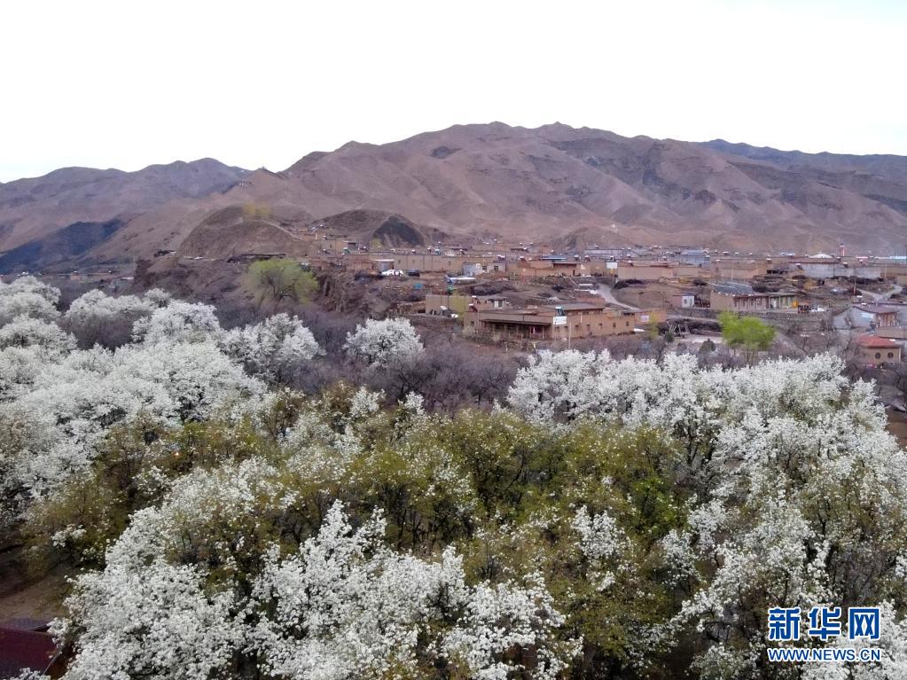 這是4月3日在中衛市南長灘村拍攝的梨花(無人機照片)。