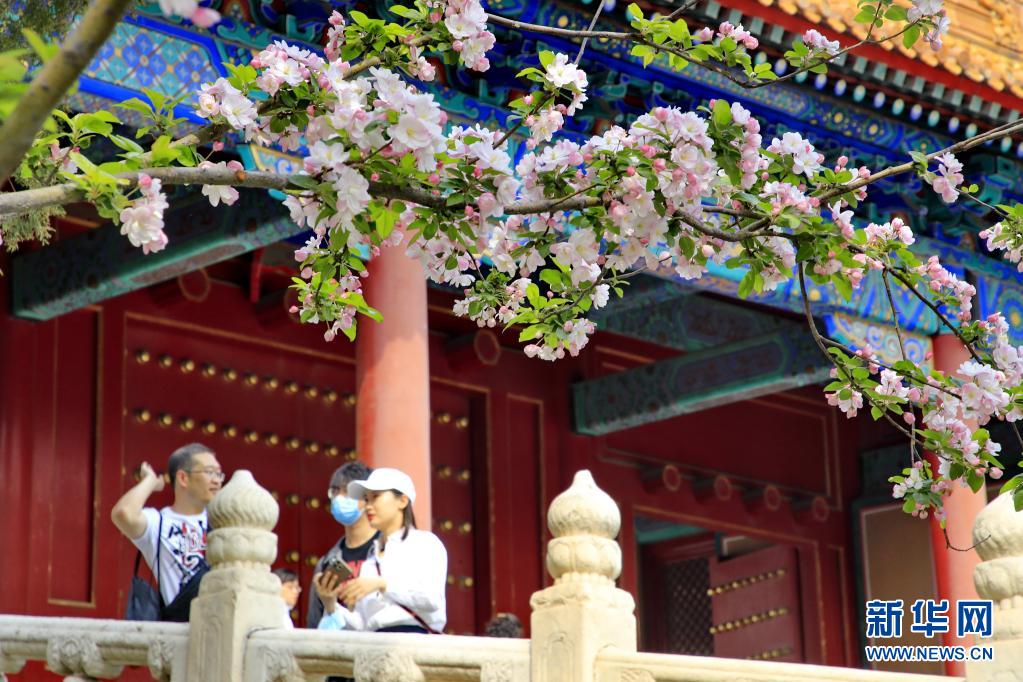 4月5日,游人在北京故宮踏春賞景。