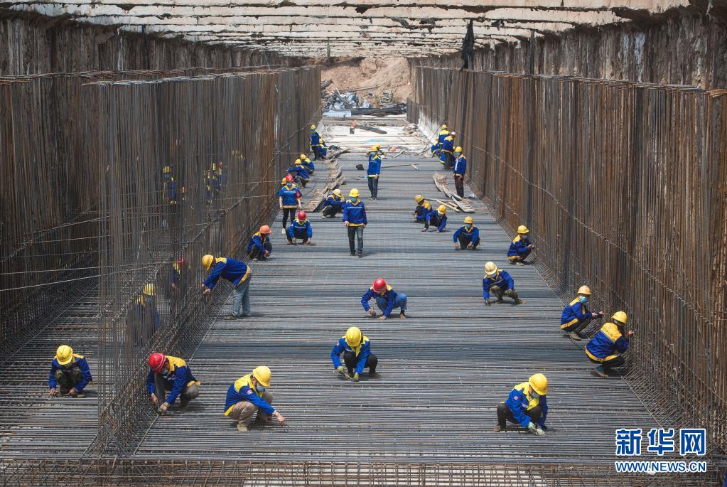 2020年4月30日,來自中鐵七局的建設者在武漢武九北綜合管廊工程施工現場作業。新華社記者 肖藝九 攝