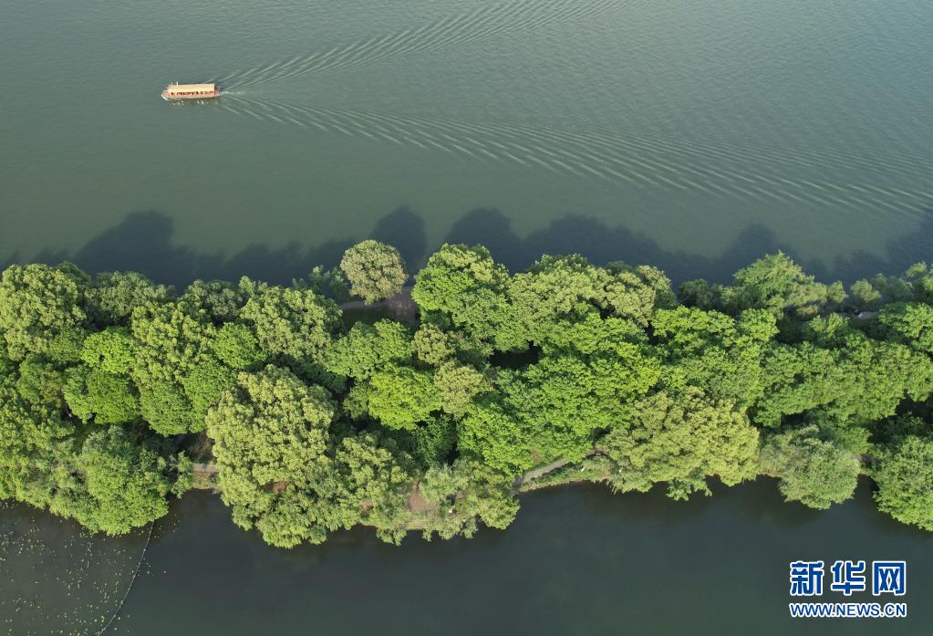 初夏時節,杭州西湖綠意蔥蘢,引人入勝。