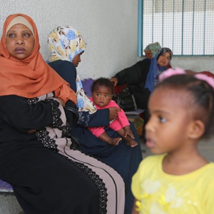 5月17日,受巴以沖突影響而逃離家園的巴勒斯坦婦女和兒童在加沙地帶拉法的一所學校臨時棲身。