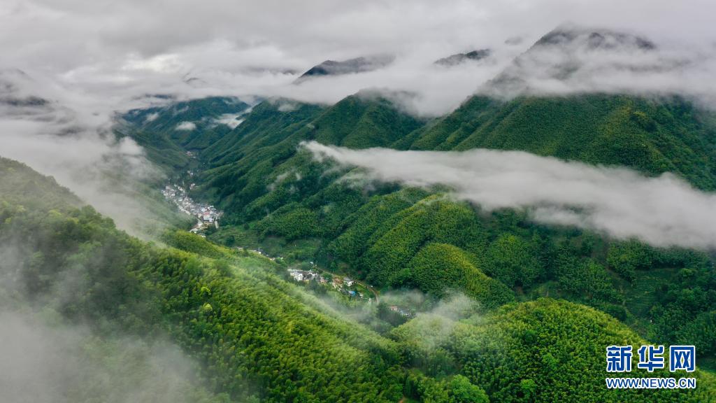 5月17日,武夷山國家公園桐木村附近群山云霧繚繞(無人機照片)。