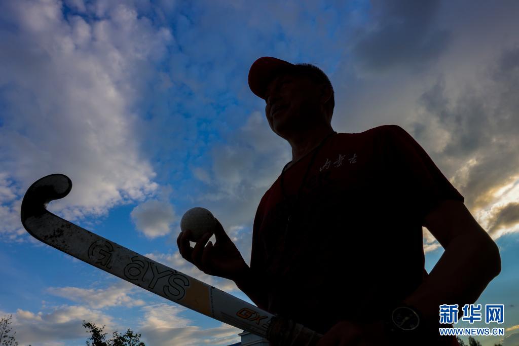 杜寶柱為塔城市第二小學曲棍球隊的小隊員們講解關于曲棍球的知識(6月11日攝)。