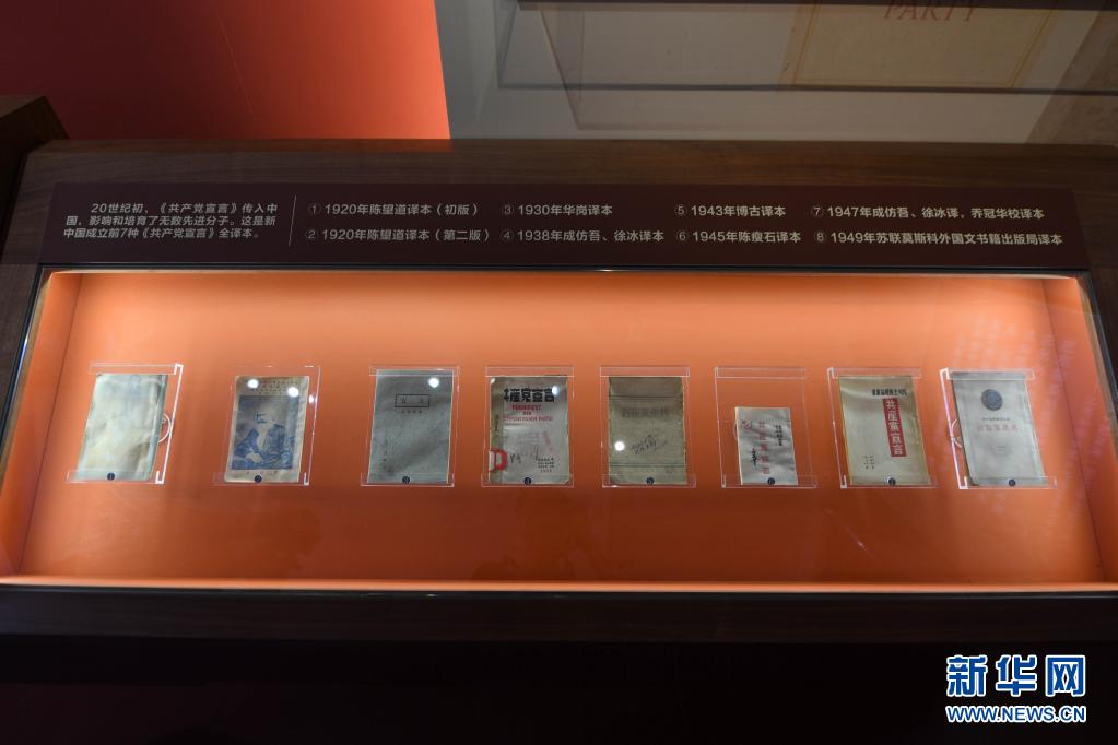 這是6月26日在北大紅樓拍攝的新中國成立以前《共產黨宣言》的7個中文譯本。新華社記者 謝晗 攝