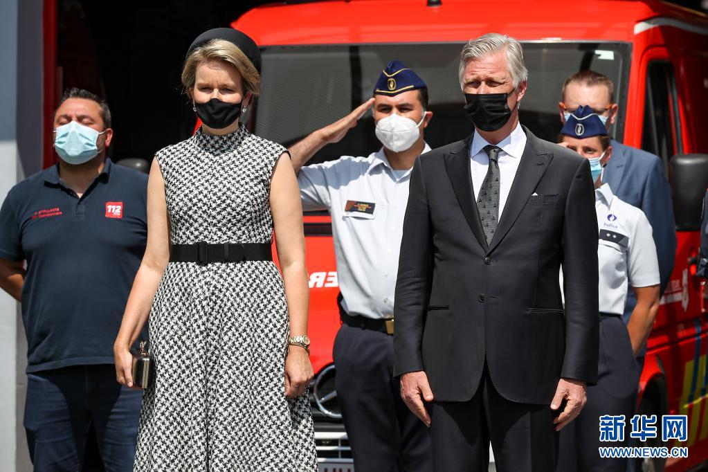7月20日,比利時國王菲利普(前右)與王后瑪蒂爾德(前左)在南部城市韋爾維耶出席悼念儀式。