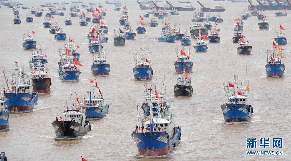 當日中午12時,浙江沿海地區(qū)的部分漁船結束伏季休漁,駛出漁港,奔赴漁場。