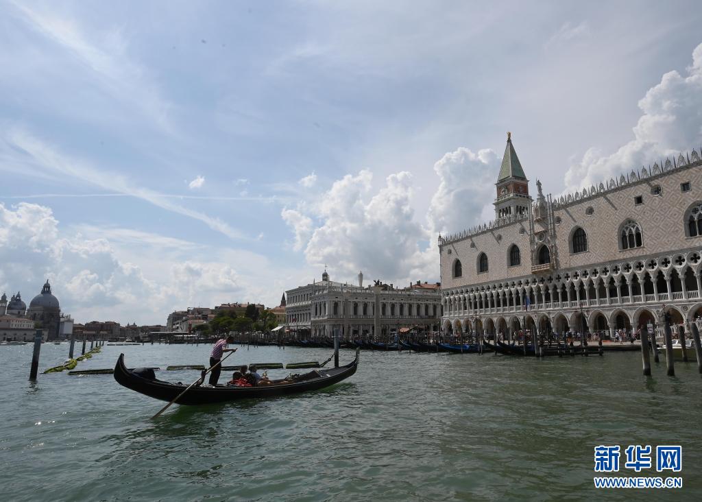 8月3日,游客乘坐“貢多拉”船游覽意大利威尼斯。