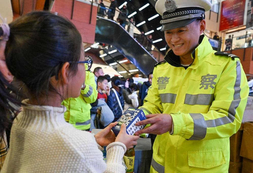 新年伊始,乌鲁木齐市公安局交通管理支队民警开展交通安全主题活动,通过在人流密集场所组织公益宣传、有奖问答等活动,倡导安全文明出行理念。