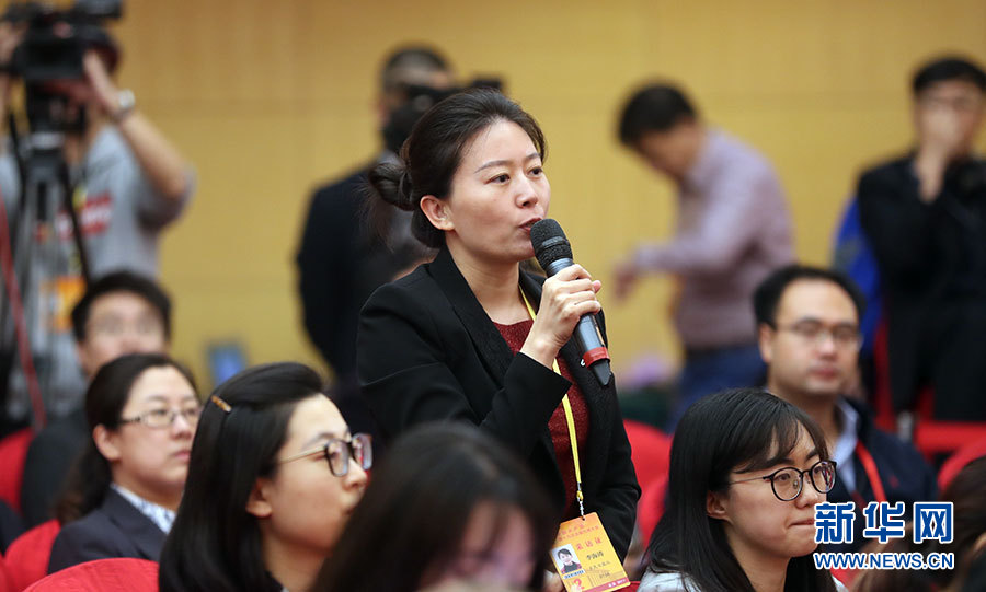 10月21日,十九大新聞中心舉辦集體采訪活動,主題為“農(nóng)業(yè)科技創(chuàng)新”。圖為農(nóng)民日報(bào)記者提問。新華網(wǎng) 郝廣鵬攝