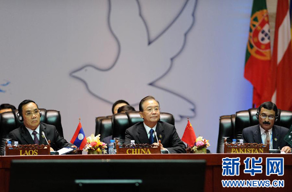 新華網萬象11月6日電(記者張藝 榮忠霞)國務院總理溫家寶6日在老撾萬象出席第九屆亞歐首腦會議第二次領導人會議,就全球性問題發言。