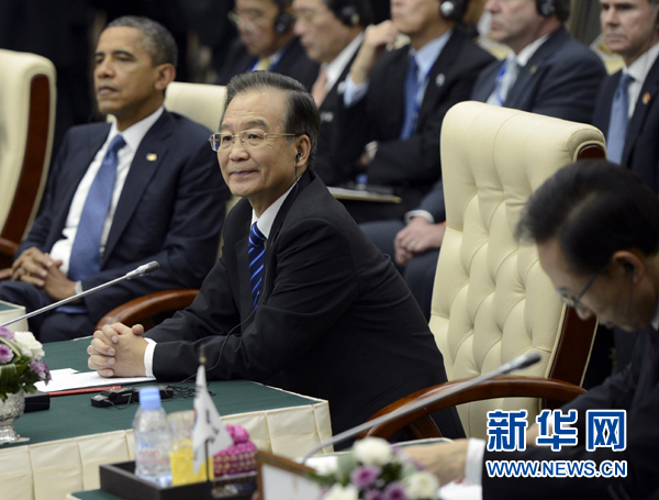 11月20日,國務院總理溫家寶在柬埔寨金邊出席第七屆東亞峰會。新華社記者 馬占成 攝